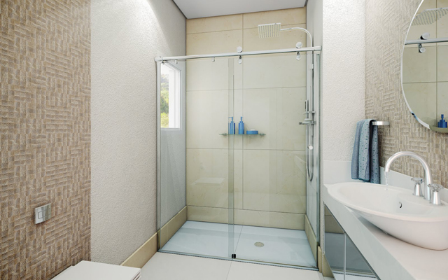 » Vidro temperado 8MM; » Trilho sem canaleta dupla não acumula água nem sujeira; » Vedação com silicone; » Acabamento em alumínio anodizado.