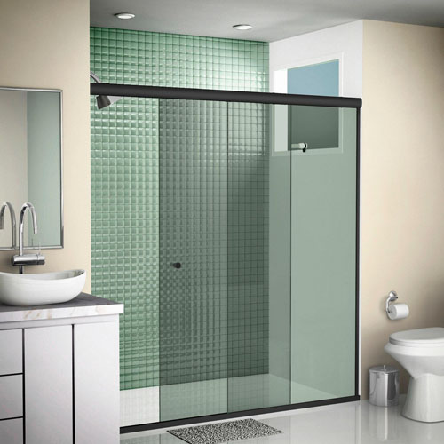 » Vidro temperado 8MM; » Trilho sem canaleta dupla não acumula água nem sujeira; » Vedação com silicone; » Acabamento em alumínio anodizado.